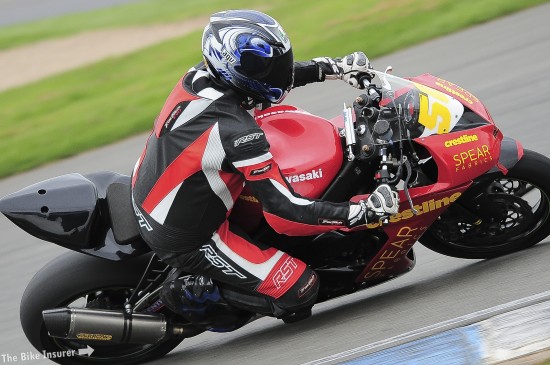 Having seriously upgraded the Kawasaki ZX10 for the new season of Thundersport - The Bike Insurer GP1 series, Crestline Spear Racing were at the first meeting of the season at Donington Park 11th - 13th April. Qualifying saw us reduce our previously best lap time by some 7 seconds per lap, not only due to the bike upgrades through the winter but also by some inspired bravery from our rider, James Boswell - owner of Spear Fabrics. James, having taken 3 huge tumbles at the back end of last season culminating in loss of skin from his forearms and a dislocated shoulder, needed his best metal to get a result from the new bike.